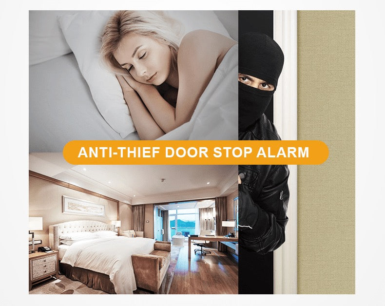 🔒 Instant Protection – Blocks doors and sounds a loud alarm to deter intruders.